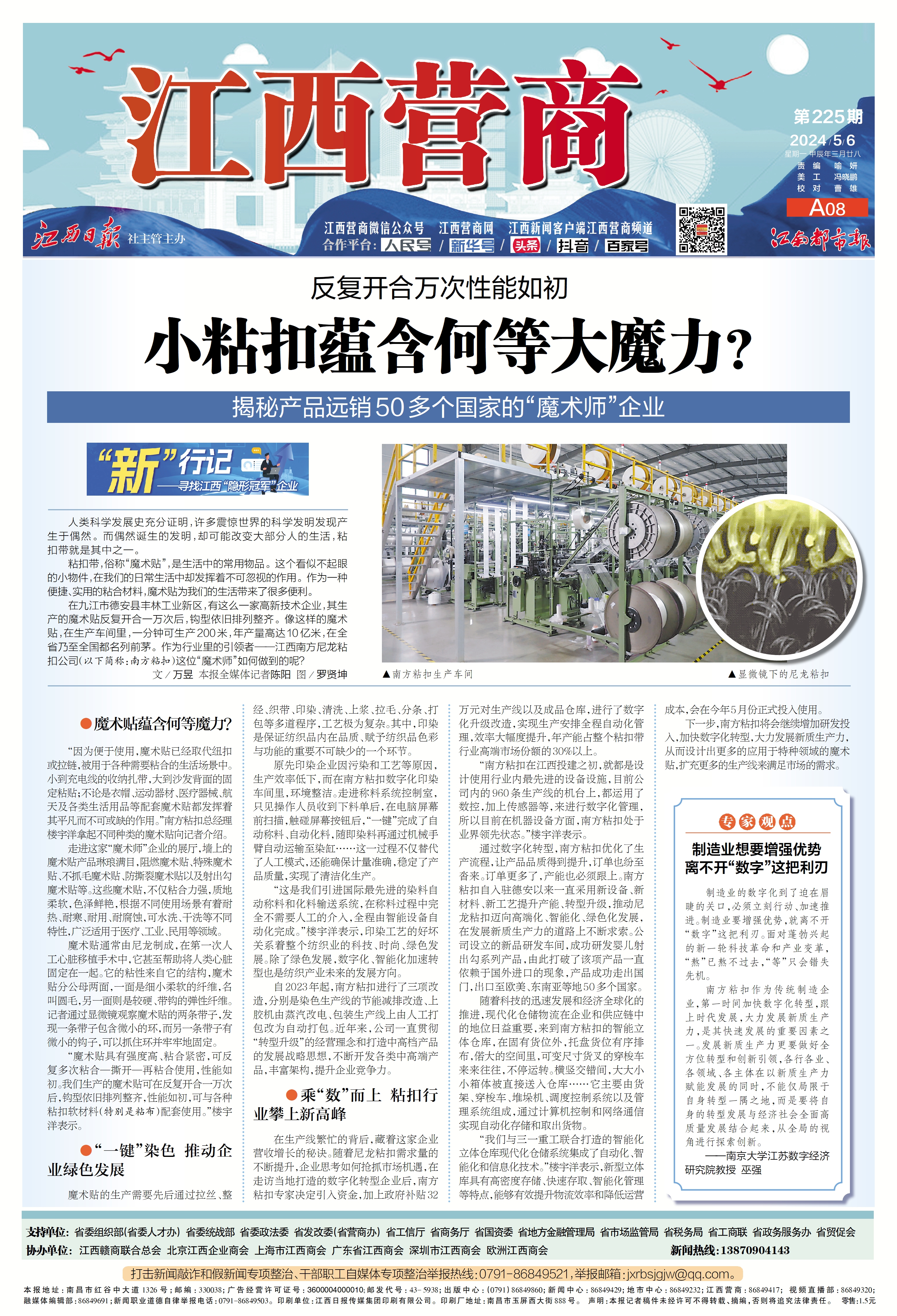 南方粘扣作為傳統制造企業,第一時間加快數字化轉型,跟上時代發展,大力發展新質生產力,是其快速發展的重要因素之一。發展新質生產力更要做好全方位轉型和創新引領,各行各業、各領域、各主體在以新質生產力賦能發展的同時,不能僅局限于自身轉型一隅之地,而是要將自身的轉型發展與經濟社會全面高質量發展結合起來,從全局的視角進行探索創新。